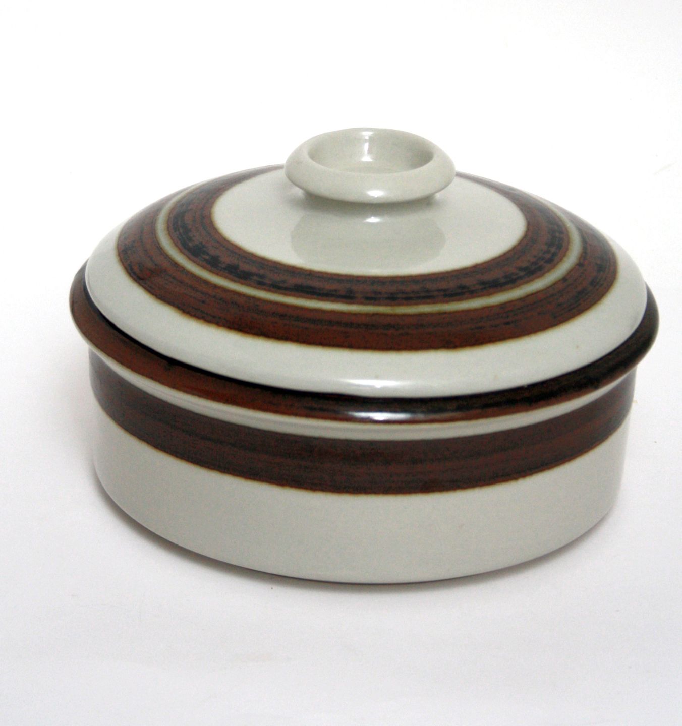 Arabia stoneware, Finland, Karelia designet af Anja Jaatinen i 1975. Stor skål med låg. Højde 13,5 cm. Diameter 22,5 cm. Pris: 375 kr. stk. Lager: 1