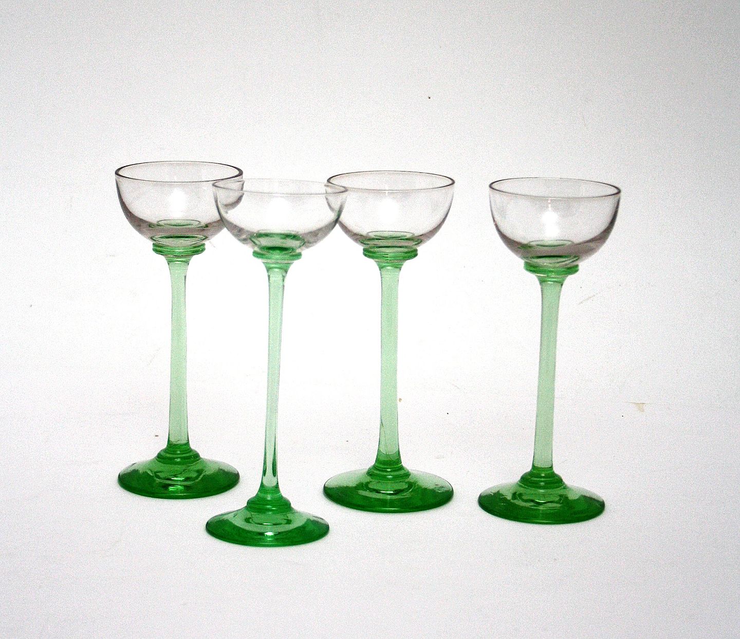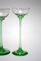 Likørglas med slank høj grøn stilk. Højde 14 cm. Diameter 5 cm. Pris: 90 kr. stk. Lager: 5