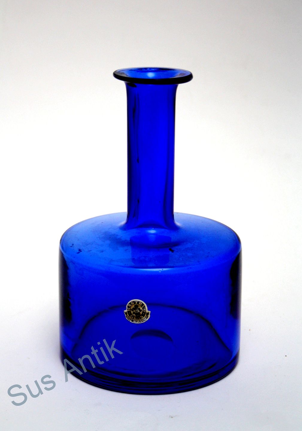 Kastrup glasværk, Flaskevase i lys koboltblå glas fra 1964. Højde 17 cm. Nederste diameter 11 cm. Lidt kalkaflejring. Pris: 250 kr. Lager: 1