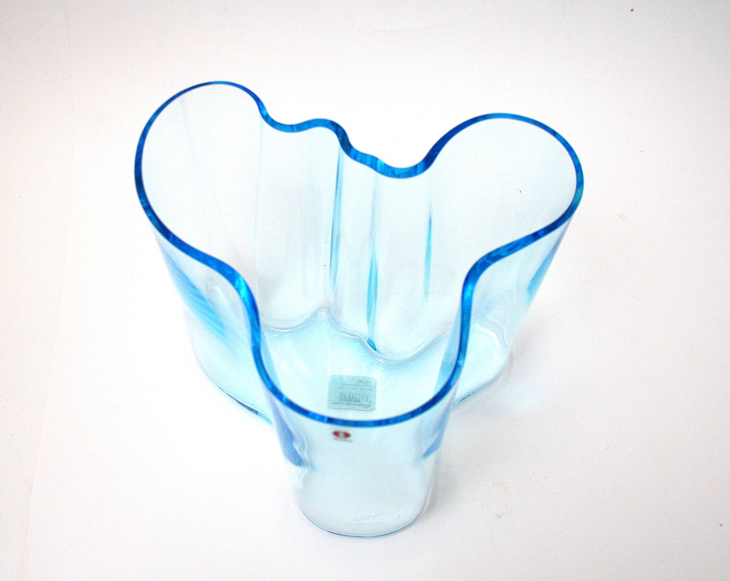 Iittala, Finland, Alvar Aalto, Lys aquablå vase. Højde 16,5 cm. Længde 20 cm. Signeret Alvar Aalto, Iittala. Flot stand. Pris: SOLGT