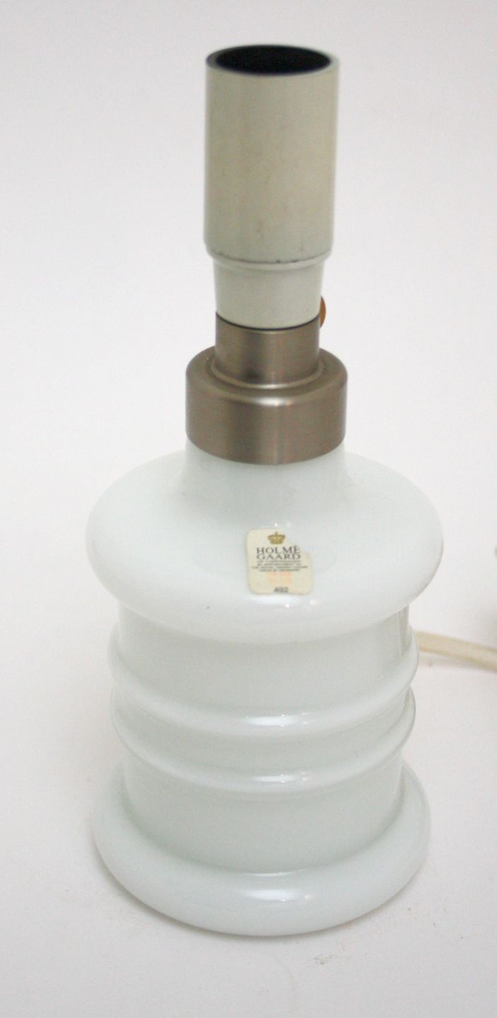 Holmegaard, Apoteker serien, hvid opaline reollampe. Designet af Sidse Werner 1985. Højde med fatning 19 cm. Diameter 8 cm. Sjælden størrelse. Pris: solgt