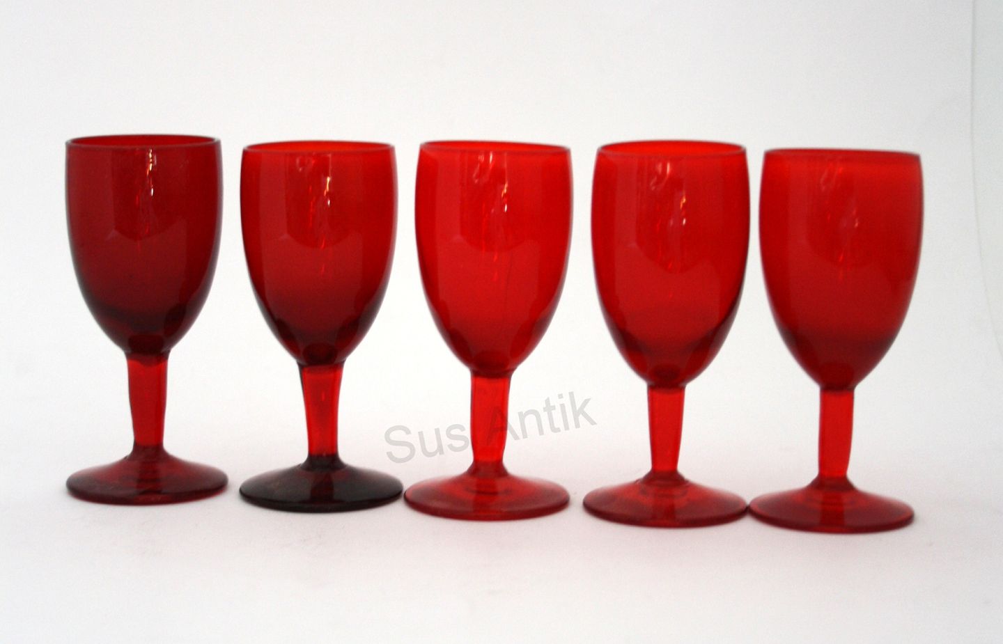 Reijmyre, Sverige, 5 røde dessertvinglas, designet af Monica Bratt.