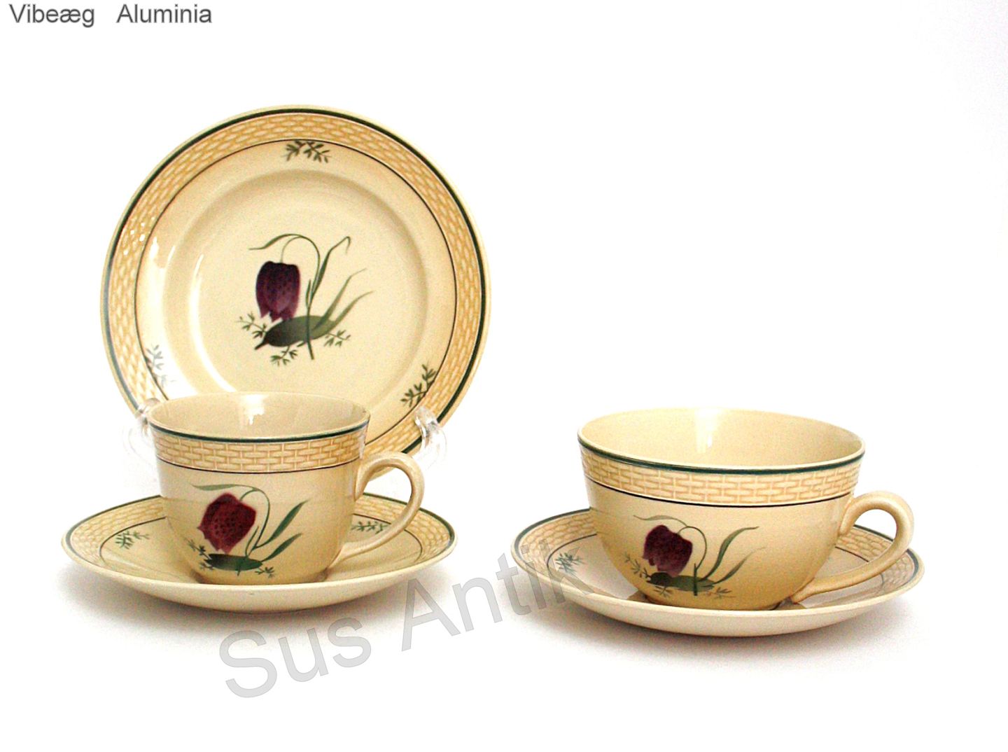 Aluminia fajance, Vibeæg. Motiv violet og grøn vibeæg blomst. Flettet kant. Formgivet af Nils Thorsson. Produceret i perioden 1934-1967.