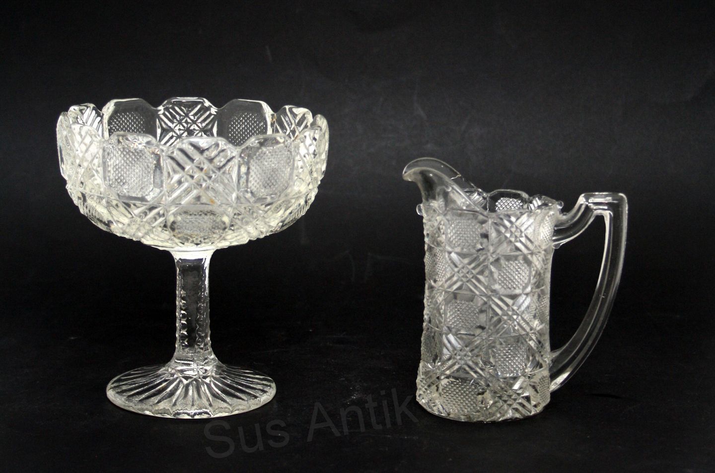 Fyens glasværk, sukkerstel hvidt ternet mønster, klart presset glas. Fremgår af katalog 1924 og 1934, løbenr. 701, fabriksnr. 196.
