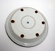 Eslau, DANSK designs Denmark, Stort dybt hvidglaseret fad med brunt mønster og mørke jernpletter. Designet af Niels Refsgaard. Diameter 33 cm. Højde 5,5 cm. Fremstillet i 1960'erne. Stempel Dansk Designs Denmark, NR. II. sortering. Pris: SOLGT