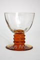 Holmegaard, Aalholm, Likørglas. Designet af Jacob E Bang. Optisk stribet kumme og ravgul fod. Højde 7,5 cm. Øverste diameter 6,5 cm. Pris: SOLGT