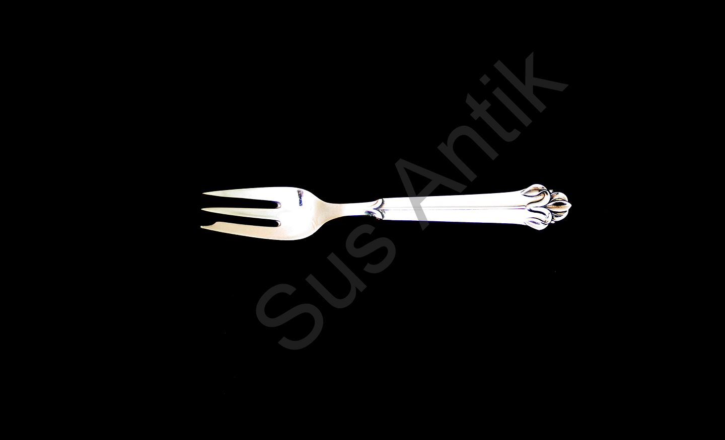 Horsens sølvvarefabrik, Iris sølvpletbestik. Kagegaffel. Længde 15 cm. Almindeligt brugsslid. Pris: 40 kr. stk. Lager: 25
