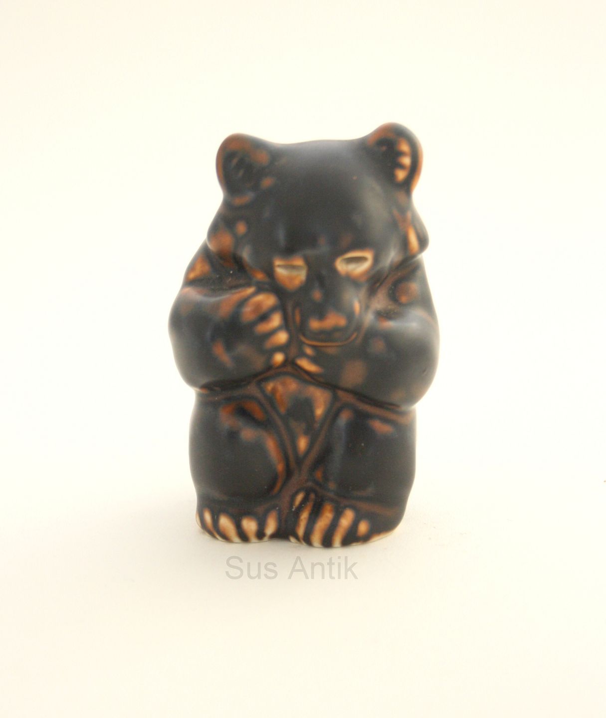 Royal Copenhagen, stoneware, brun glasur. Bjørneunge siddende på bagben. Formgivet af Knud Kyhn. Nr. 21435. Højde 8,5 cm. Pris: 150 kr. stk. Lager: 5