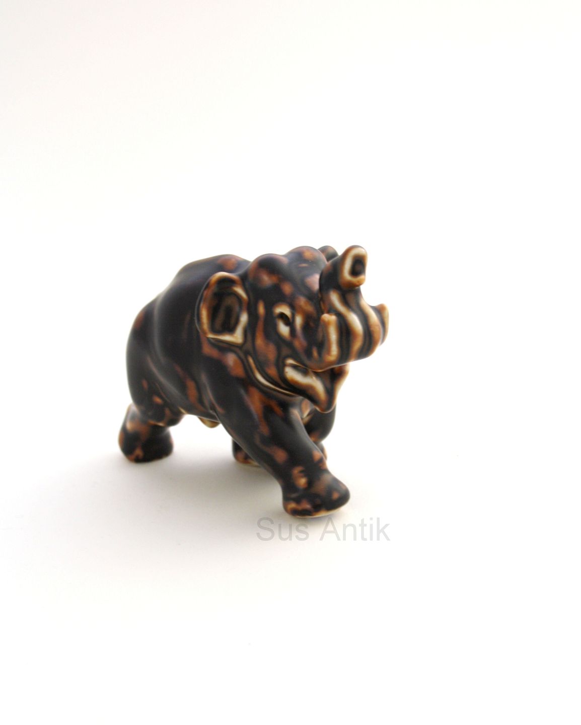 Royal Copenhagen, stoneware, Elefantunge gående med snabel løftet. Formgivet af Knud Kyhn og Jeanne Grut. Nr. 20220. Højde 7,5 cm. Længde 10 cm. Pris: 450 kr.