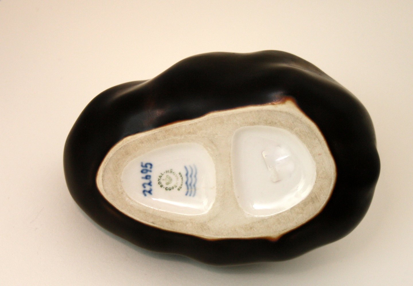 Royal Copenhagen, stoneware i brun glasur. Kanin liggende stor formgivet af Jeanne Grut. Nr. 22695. II. sortering. Pris: SOLGT