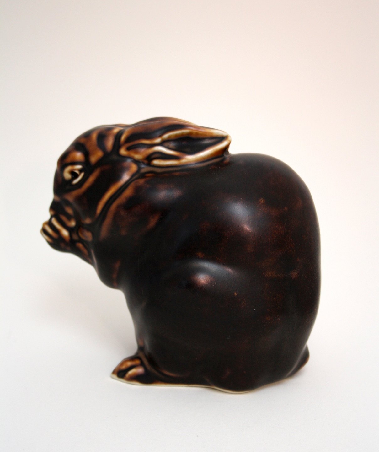 Royal Copenhagen, stoneware i brun glasur. Kanin siddende stor formgivet af Jeanne Grut. Nr. 22694. II sortering. Pris: 1.600 kr. stk. Lager: 3