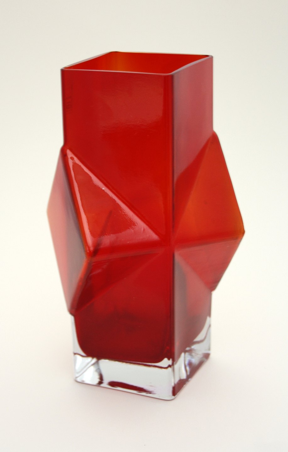 Riihimaen Lasi, Finland Pablo vase. Designet af Erkkitapio Siiroinen cirka 1971. Højde 20 cm. Øverste mål 7 x 7 cm. Fin stand. Pris: 950 kr.