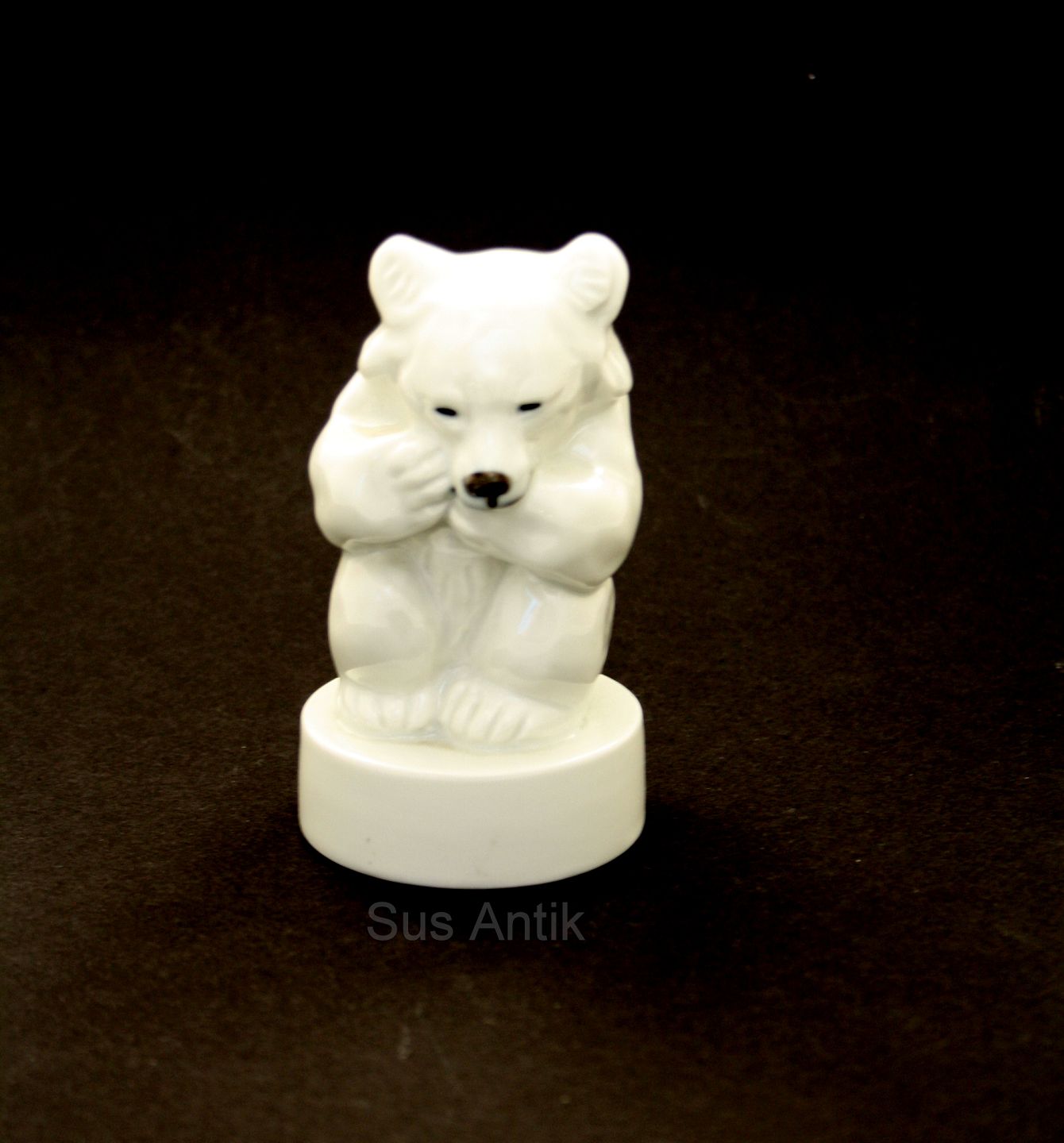 Royal Copenhagen, Isbjørneunge oprejst på sokkel. Formgivet af Knud Kyhn fra 1904 og frem. Nr. 235. Højde 9 cm. Pris: SOLGT