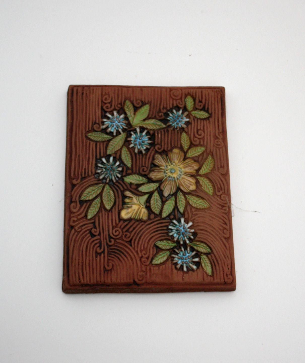 Jie-Keramik, Sweden, Relief med Blomster. Design Aimo. Formnr. 995. 17,5 x 13,5 cm. Pris: 175 kr.