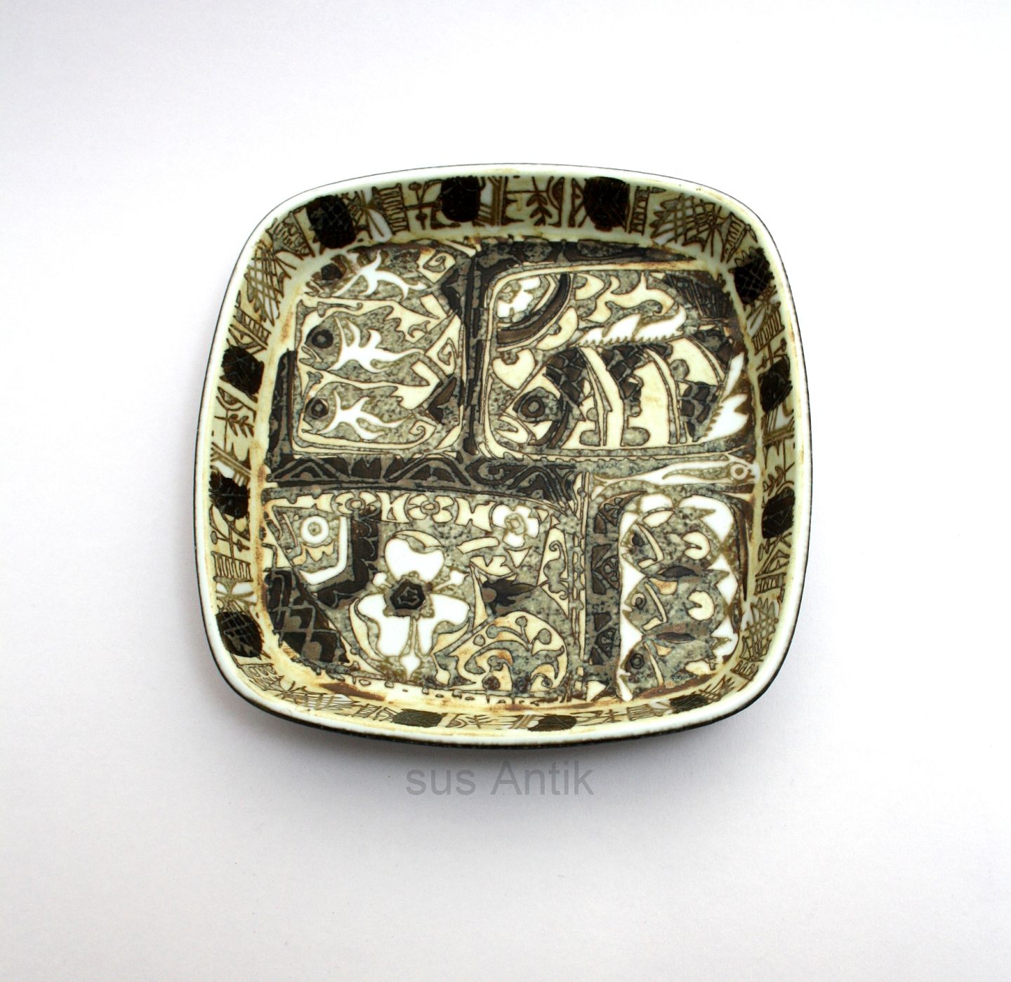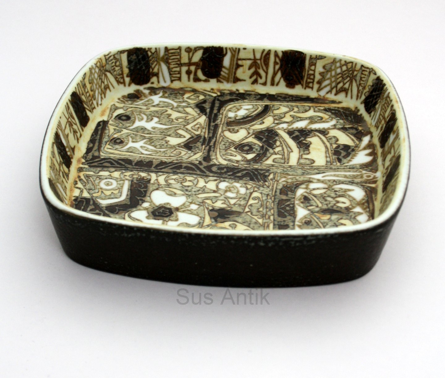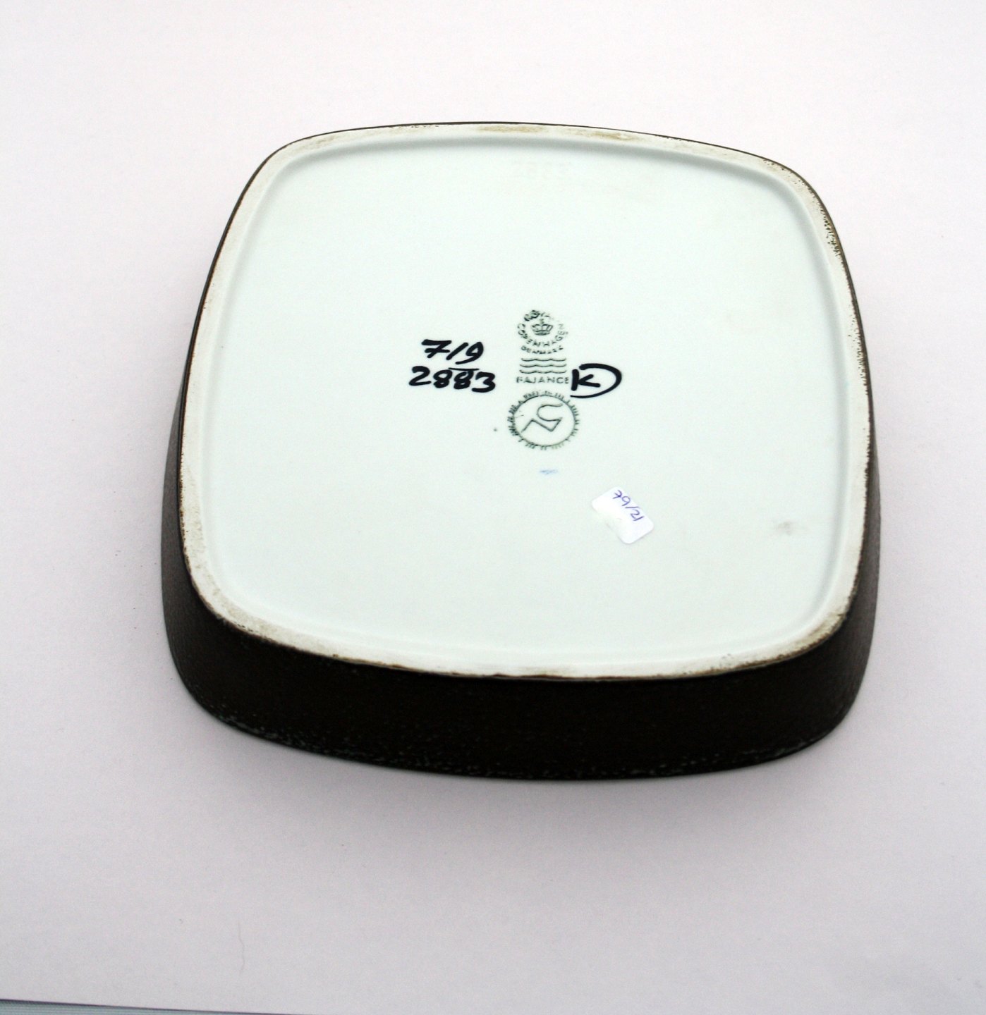 Royal Copenhagen, Fajance, Baca i brune nuancer i mat glasur, designet af Nils Thorsson i 1964. Mindre fad. Nr. 719/2883. 16,5 x 16,5 cm. Højde 3 cm. Pris: 200 kr. stk. Lager: 2