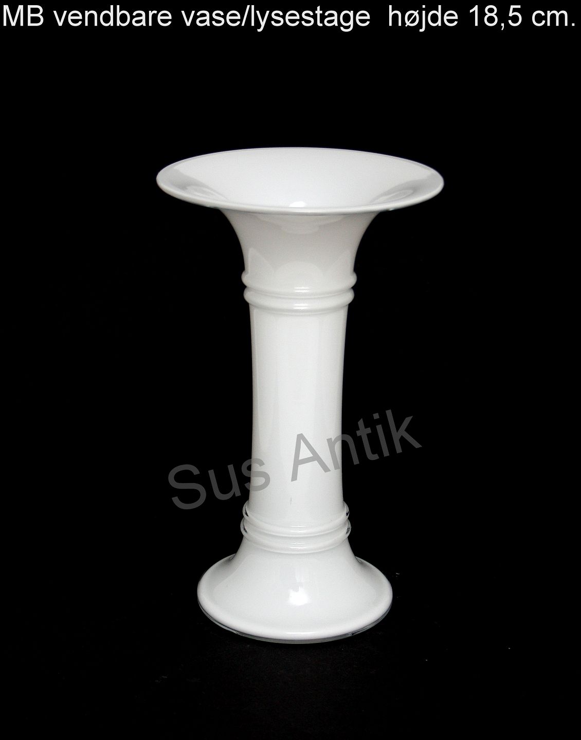 Holmegaard, MB serien opalinehvid glas, Mellemstørrelse vendbar vase/lysestage. Designet af Michael Bang i 1981. Højde 18,5 cm. Pris 275 kr. stk. Lager: 8