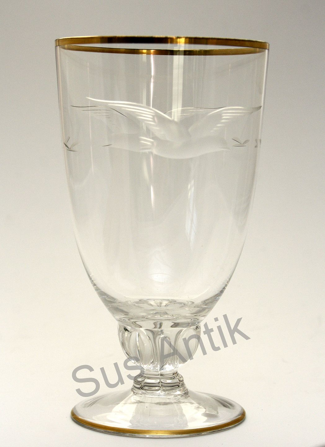 Lyngby glas, Måge glas med guldkant og mågeslibning. Ølglas, højde 13,8 cm. Pris: 100 kr. pr. stk. Lager: 4