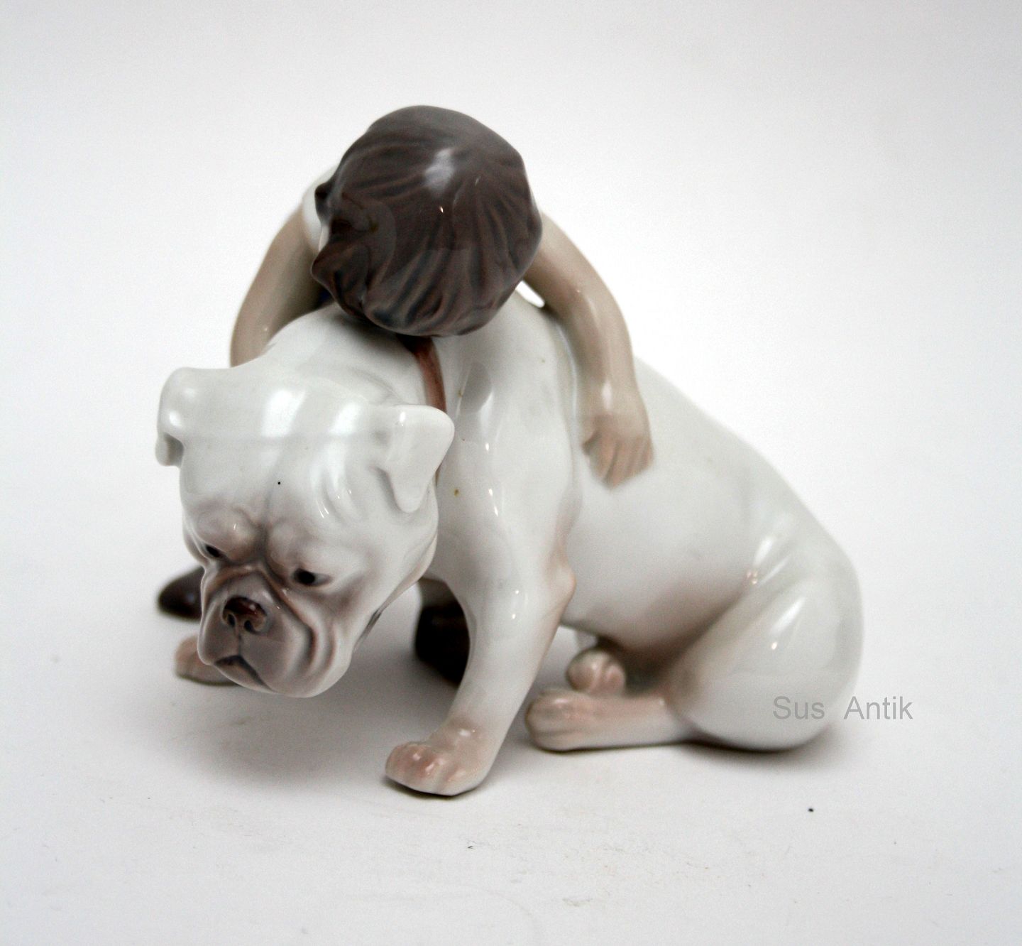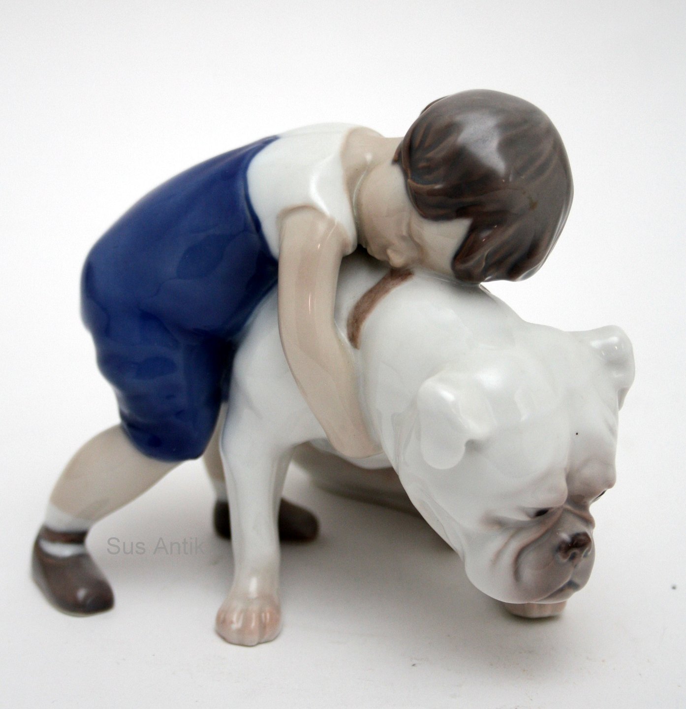 Bing og Grøndahl, To venner, dreng med bulldog. Nr. 1790. Højde 10 cm. Længde 13 cm. I. sort. Designet af Michaela Ahlmann. Fin stand. Pris: SOLGT
