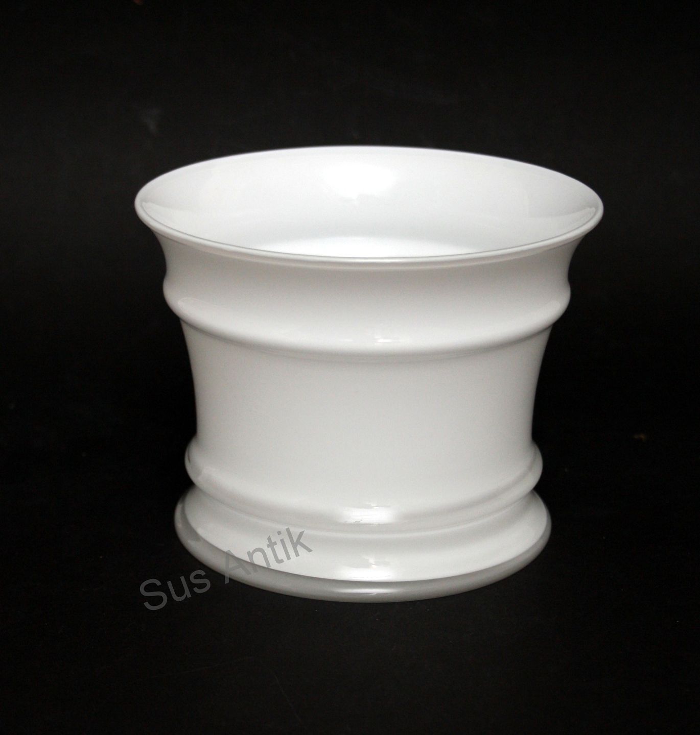 Michael Bang urtepotteskjuler fra MB serien, Opalhvid med klart krystal overfang, Holmegaard glasværk fra 1981 og frem. Mellem urtepotteskjuler. Højde 10,5-11 cm. Diameter 14 cm. Pris: 375 kr. stk. Lager: 4