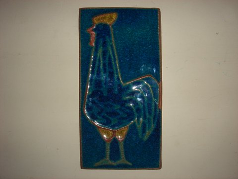 Knabstrup, Relief med sejlskib. Designet af Waltraud T-Praschak. Minimale småafslag på kant. Længde 23 cm. Højde 18,5 cm. Pris: SOLGT