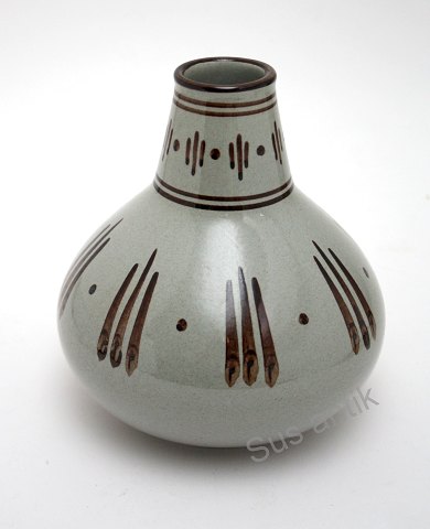 Knabstrup, Venedig serien formgivet af Günter Praschak. Produceret ca. 1968-1970. Vase. Nr. 329. Højde 10,5 cm. Diameter 9 cm. II. sortering. Lettere overfladekrakelering. Pris: 350 kr.