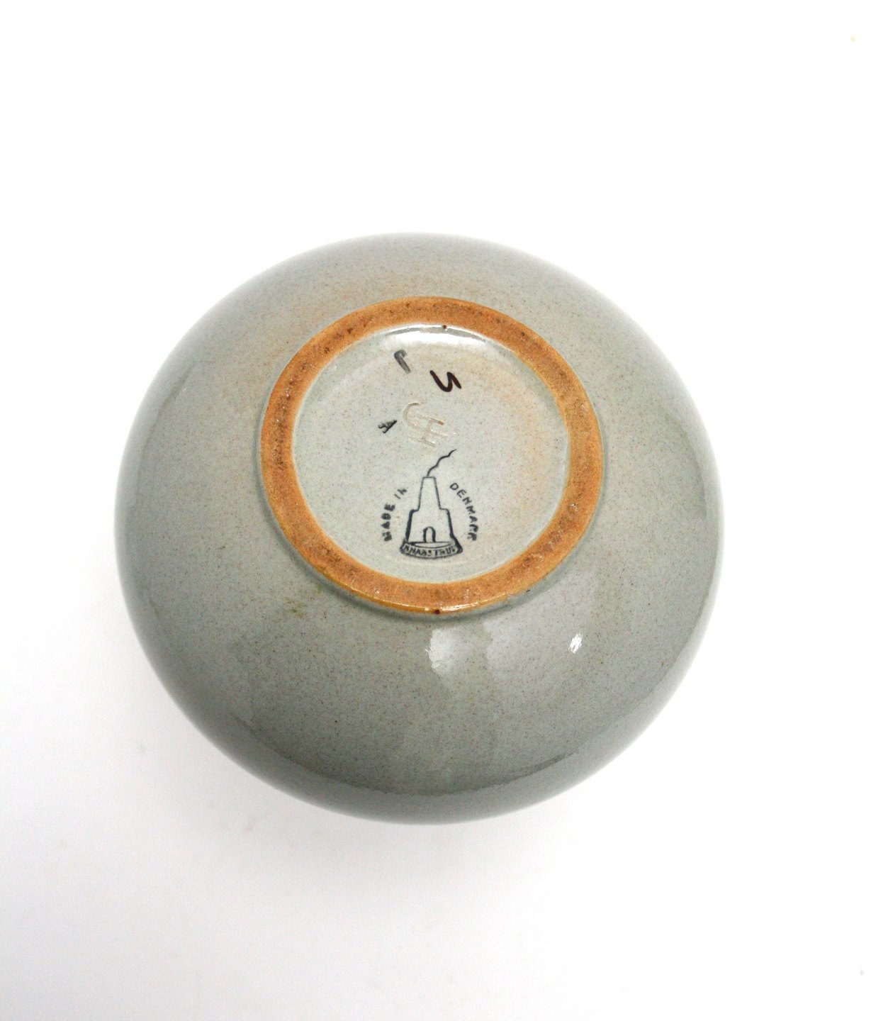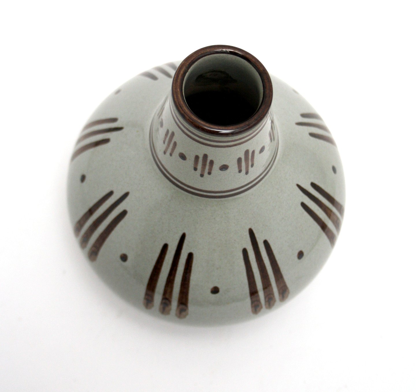 Knabstrup, Vase. Designet kunstnerisk leder Johannes Hansen. Højde 15 cm. Diameter 13 cm. Fin stand. Pris: 375 kr.