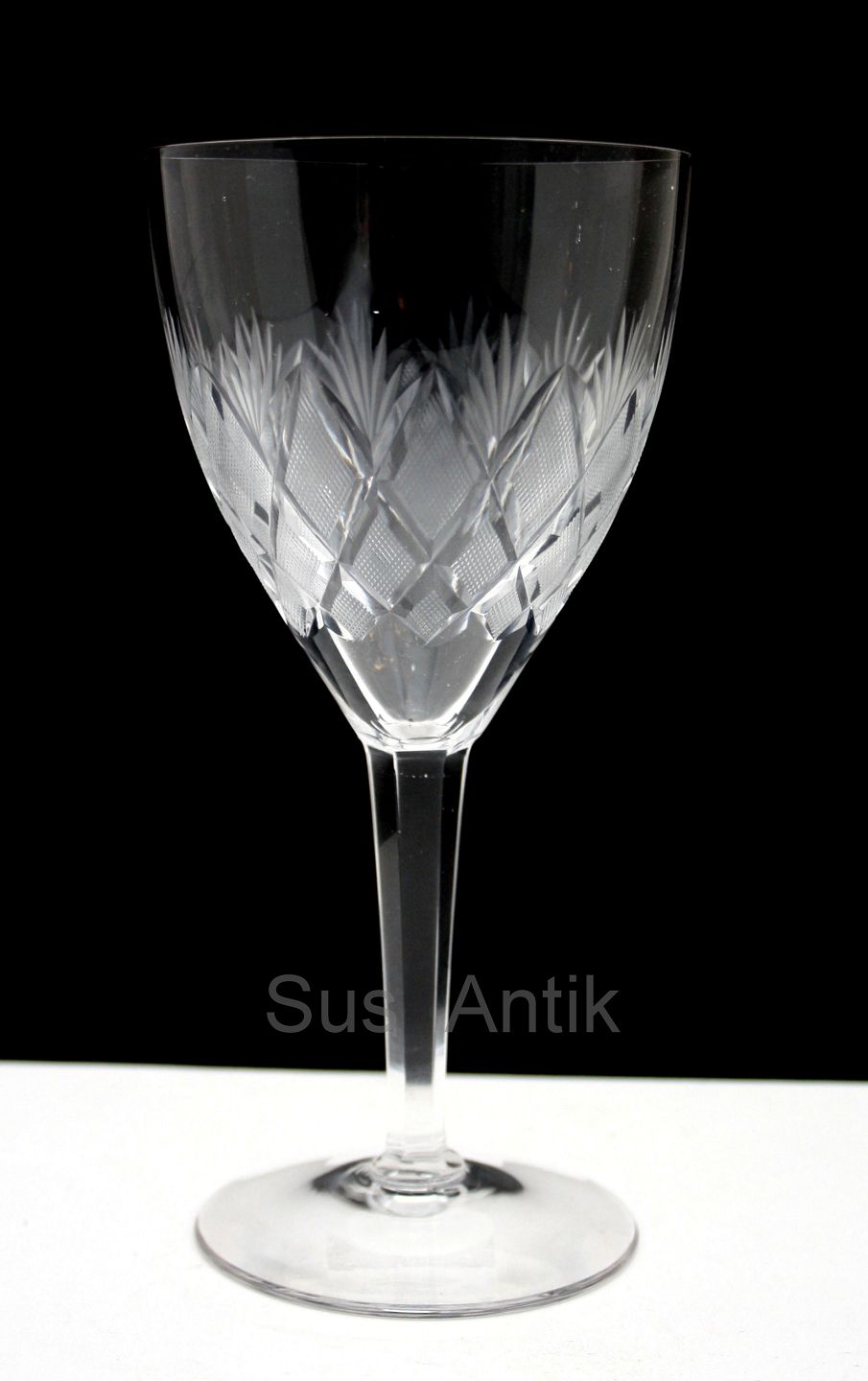 Lyngby glasværk, Antik glas med antik slibning og slebet stilk. Rødvin, stor med udadgående kumme. Højde 18 cm. Diameter 8,7 cm. Pris: 200 kr. stk. Lager: 9