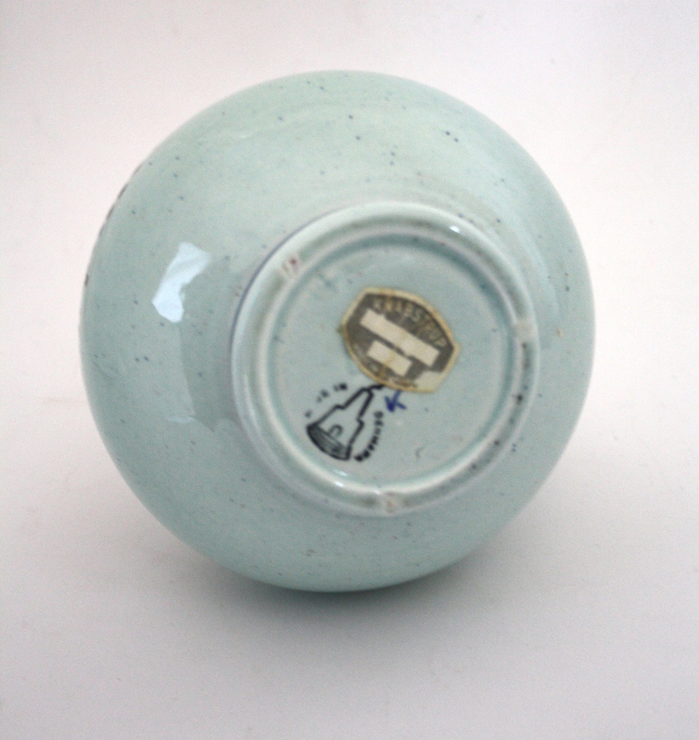 Knabstrup, Madam Blå serien, Blanke Maren kande lyseblå. Højde 20 cm. Fin stand med overfladekrakeleringer. Pris: 225 kr.
