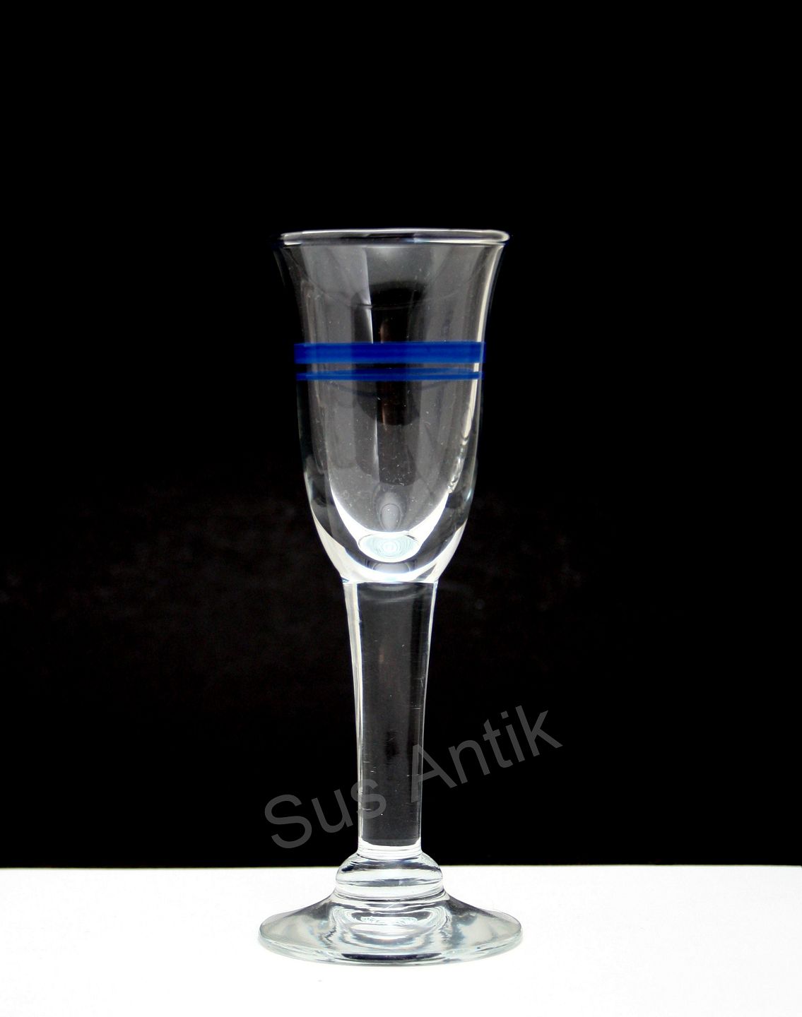 Holmegaard glasværk, Blå klokke glas. Designet af Ole Winther, 1974-90. Snaps, højde 13,6 cm. Pris: 100 kr. stk. Lager: 12+