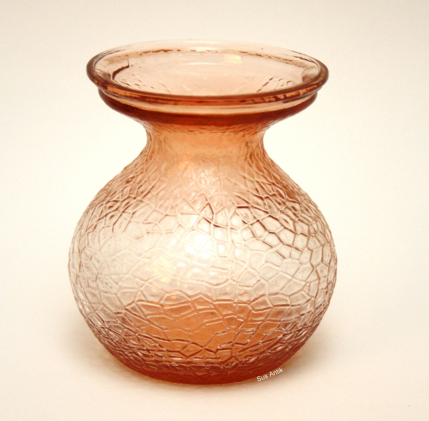 Fyens Glasværk "Blomsterløg" Kugleformet hyacinth glas/vase "net" mønster i maskinblæst presset støvet laksefarvet glas. Fra 1924. Højde 11,5 cm. Øverste diameter 9 cm. Største diameter ca. 11,5 cm. En anelse kalkaflejring på midten. Pris: SOLGT