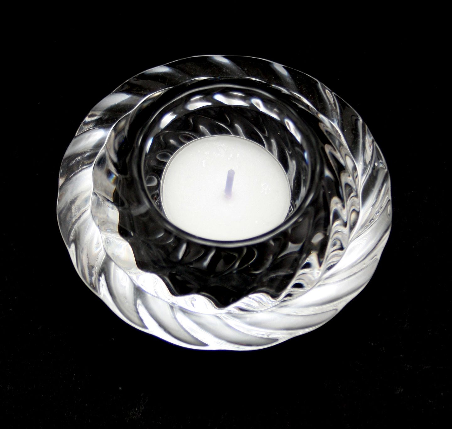 Holmegaard, Capriole, Fyrfadsstage. Designet af Sidse Werner i 1987. Højde 4,5 cm. Diameter 10 cm. Pris: 75 kr. stk. Lager: 6