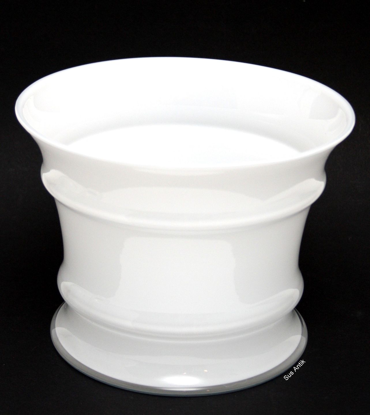 Holmegaard, Stor Urtepotteskjuler fra MB serien, Opalhvid med klart krystal overfang. Designet af Michael Bang i 1981. Højde ca.13 cm. Diameter ca.17 cm. Ingen signatur i bund. OBS ARKIV foto. Pris: 450 kr. stk. Lager: 1