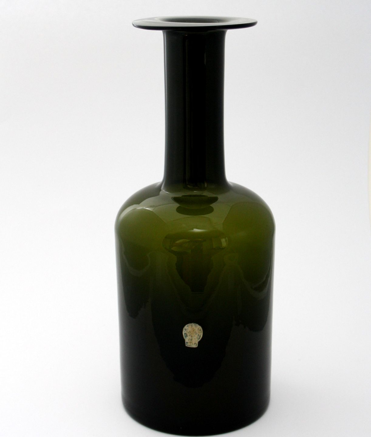 Kastrup-Holmegaard Glasværk, Mellemstor flaskegrøn gulvvase, nr. 2 på ekstrafoto. Højde 31 cm. Designer Otto Brauer 1959. Pris: SOLGT