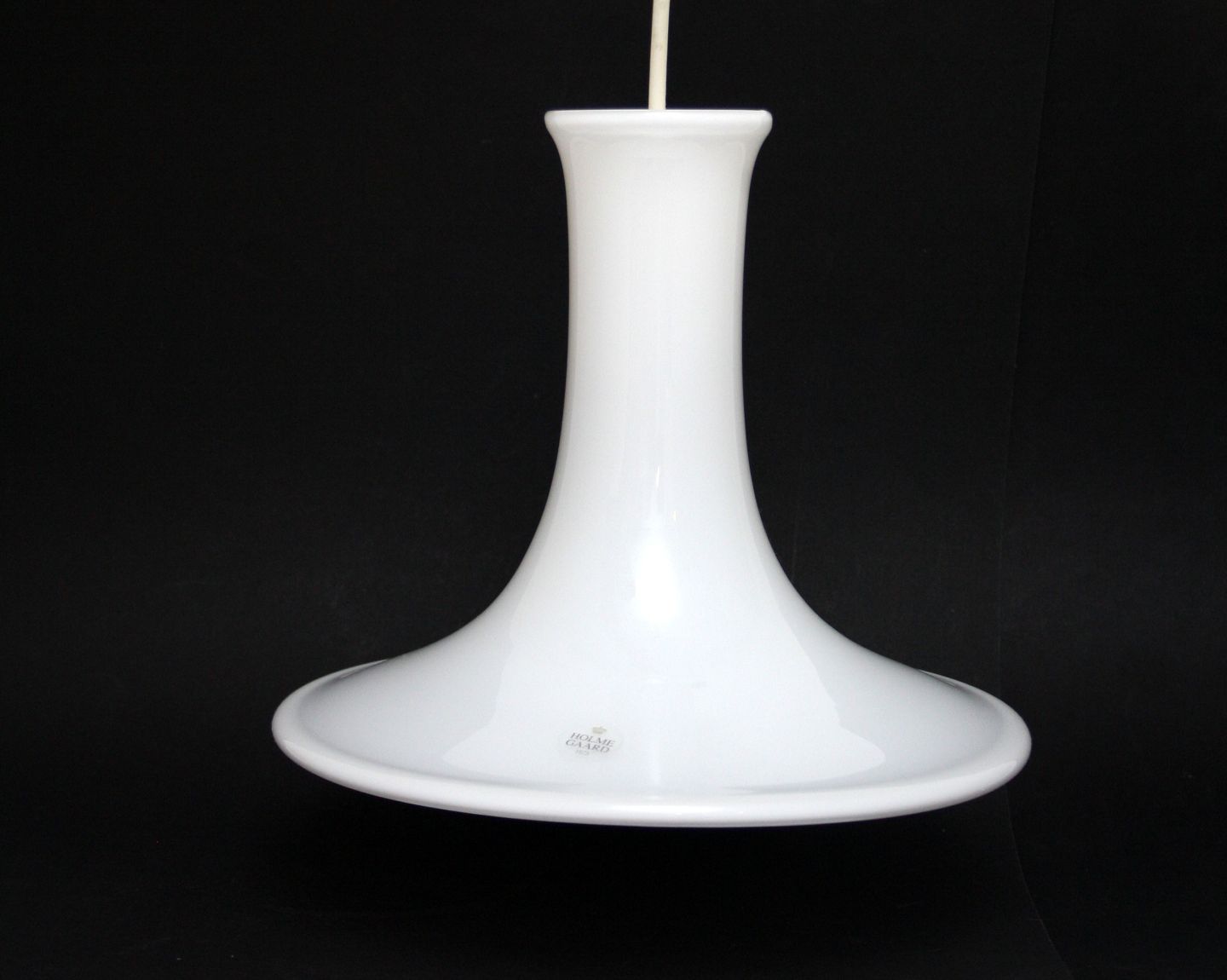 Holmegaard/Fyens Glasværk, Mandarin lille pendel i hvid opaline glas. Designet af Michael Bang i 1983. Højde 14 cm. Diameter 19 cm. Pris: SOLGT