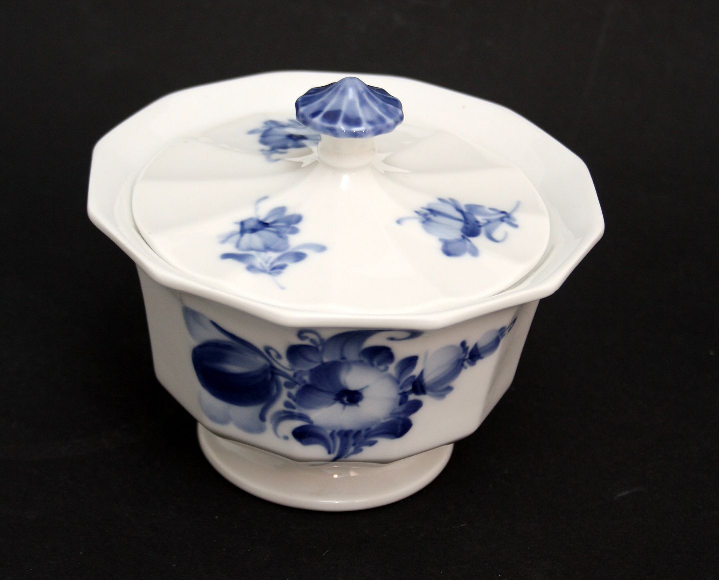 Sukkerskål med låg høj model, Blå Blomst kantet, Royal Copenhagen