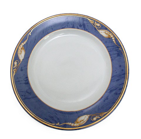 Royal Copenhagen, Blå Magnolia. Blå marmoreret bort dekoreret med gylden blomsterknop. Designet af Flemming Eskildsen.