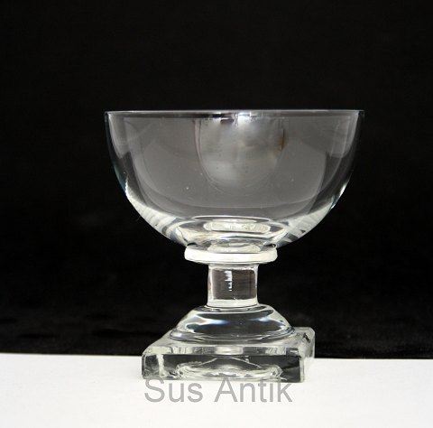 Holmegaard glasværk, Gorm den Gamle/Viking glas med kraftig firkantet slebet fod. Bunden har opstukket "blomst" med runde kronblade. Ikke planslebet på toppen af fod. Portvin. Højde 9 cm. Diameter 5,2 cm. Minimale afslag i bunden af fod. Fin stand. Pris: 125 kr. stk. Lager: 4