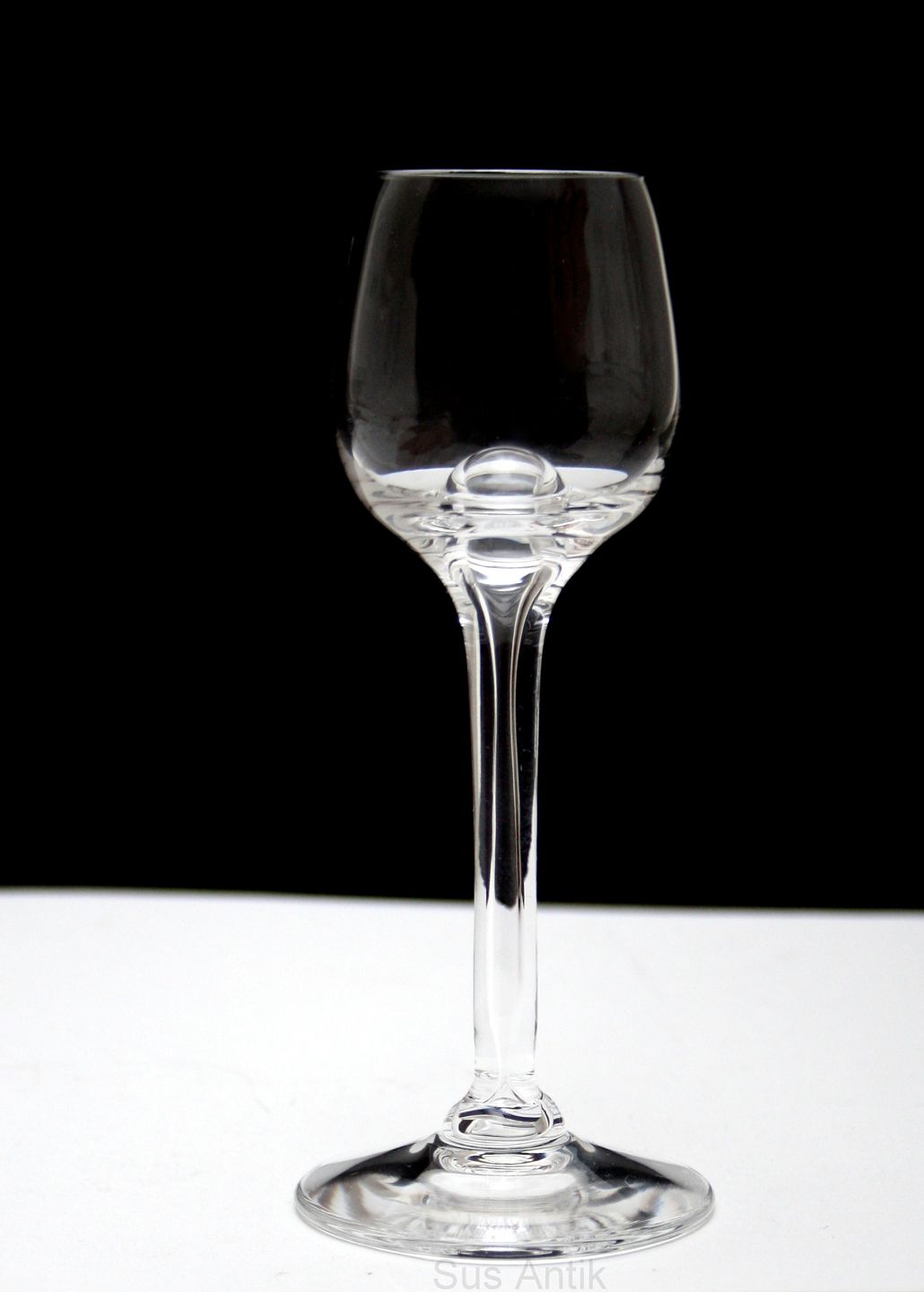 Fontaine glas, designet af Michael Bang 1986, Holmegaard glasværk. Et højt elegant glas med hul stilk, med en boble i bunden af glasset, et stykke glasmagerkunst. Snaps. Højde 12 cm. Øverste diameter 3 cm. Pris: SOLGT