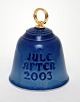 Bing & Grøndahl, Lille juleklokke 2003, Børn der bygger snemand. Højde 8 cm. I. sortering. Pris: SOLGT