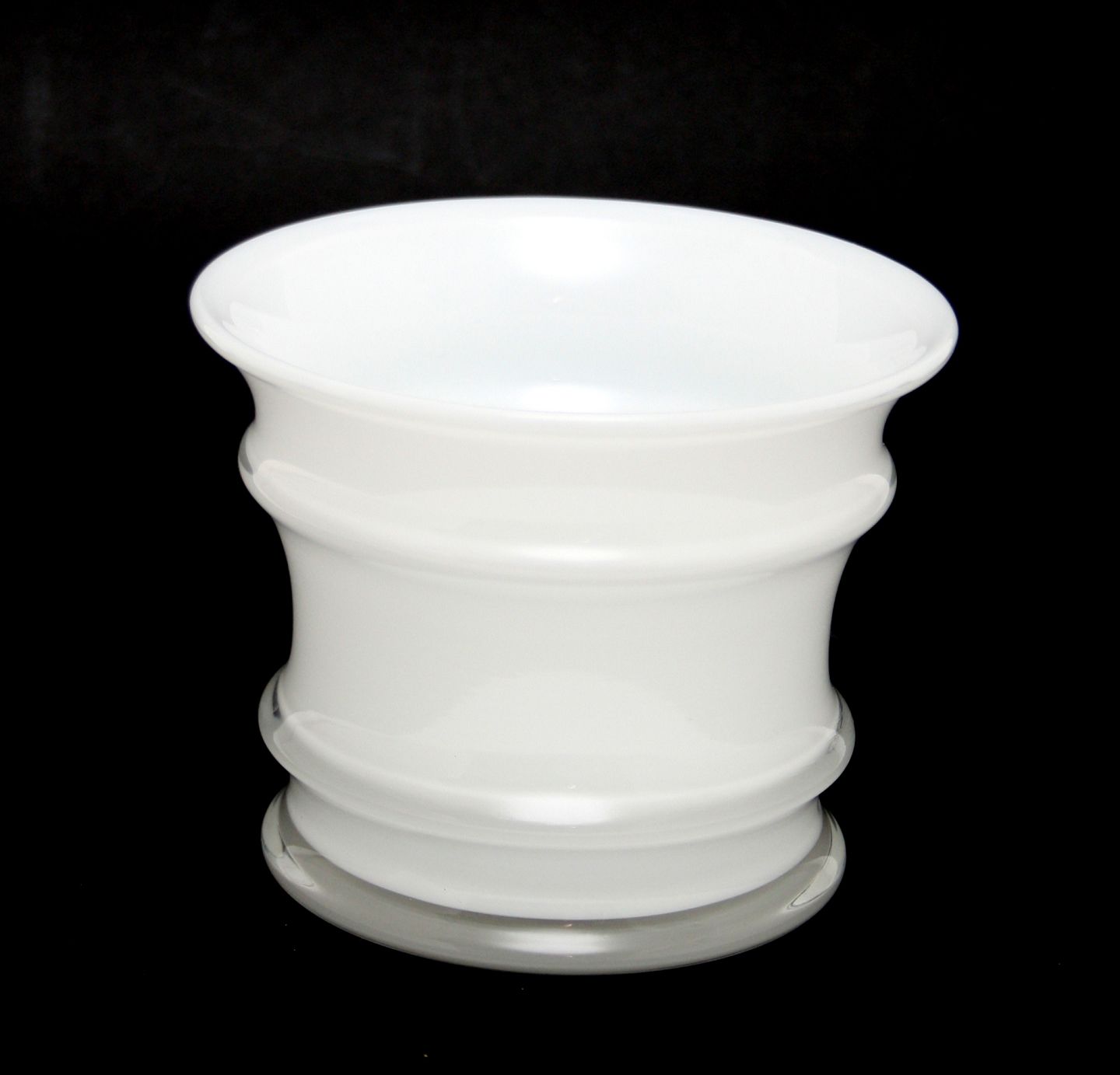 Holmegaard, Lille urtepotteskjuler fra MB serien. Opalhvid med klart krystal overfang. Designet af Michael Bang i 1981.