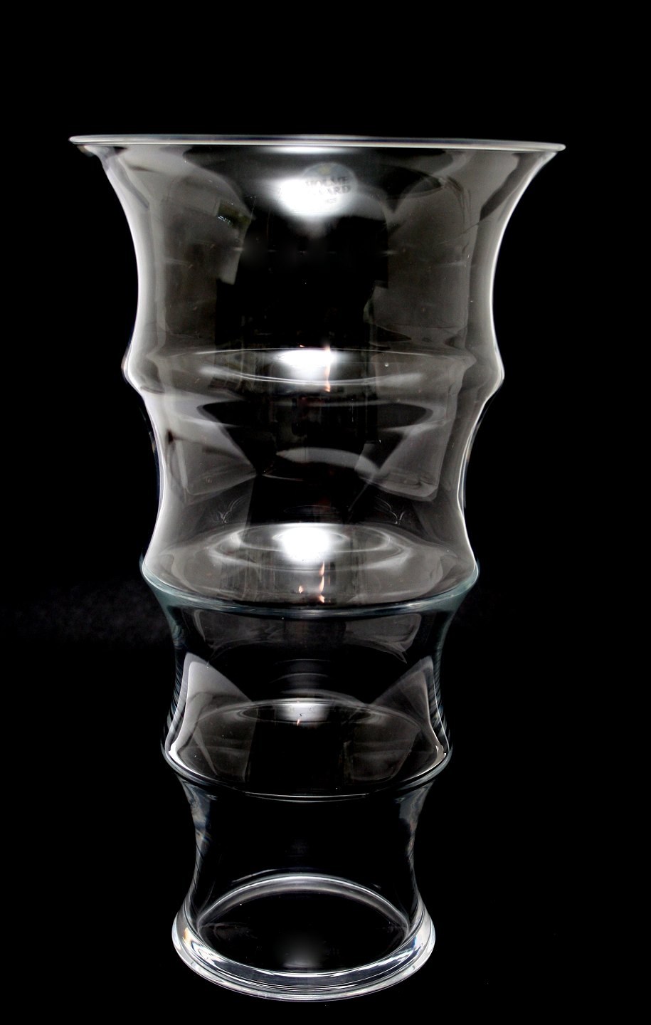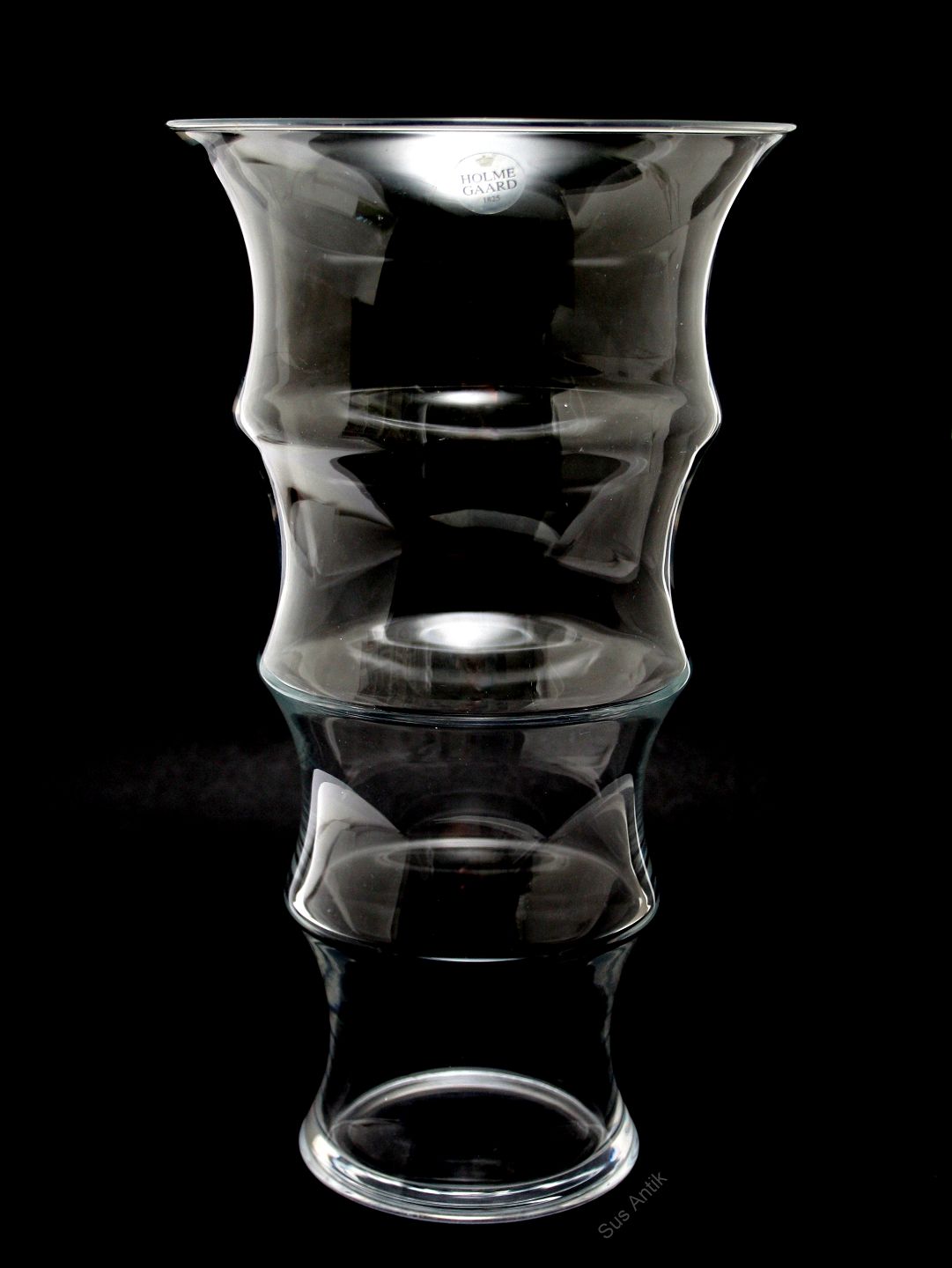 Holmegaard, Karen Blixen klar vase, designet af Anja Kjær i 2000. Vasens form er inspireret af afrikanske kvinders hals og armringe. Højde 31,7 cm. Diameter 17 cm. Fin stand. Pris: SOLGT