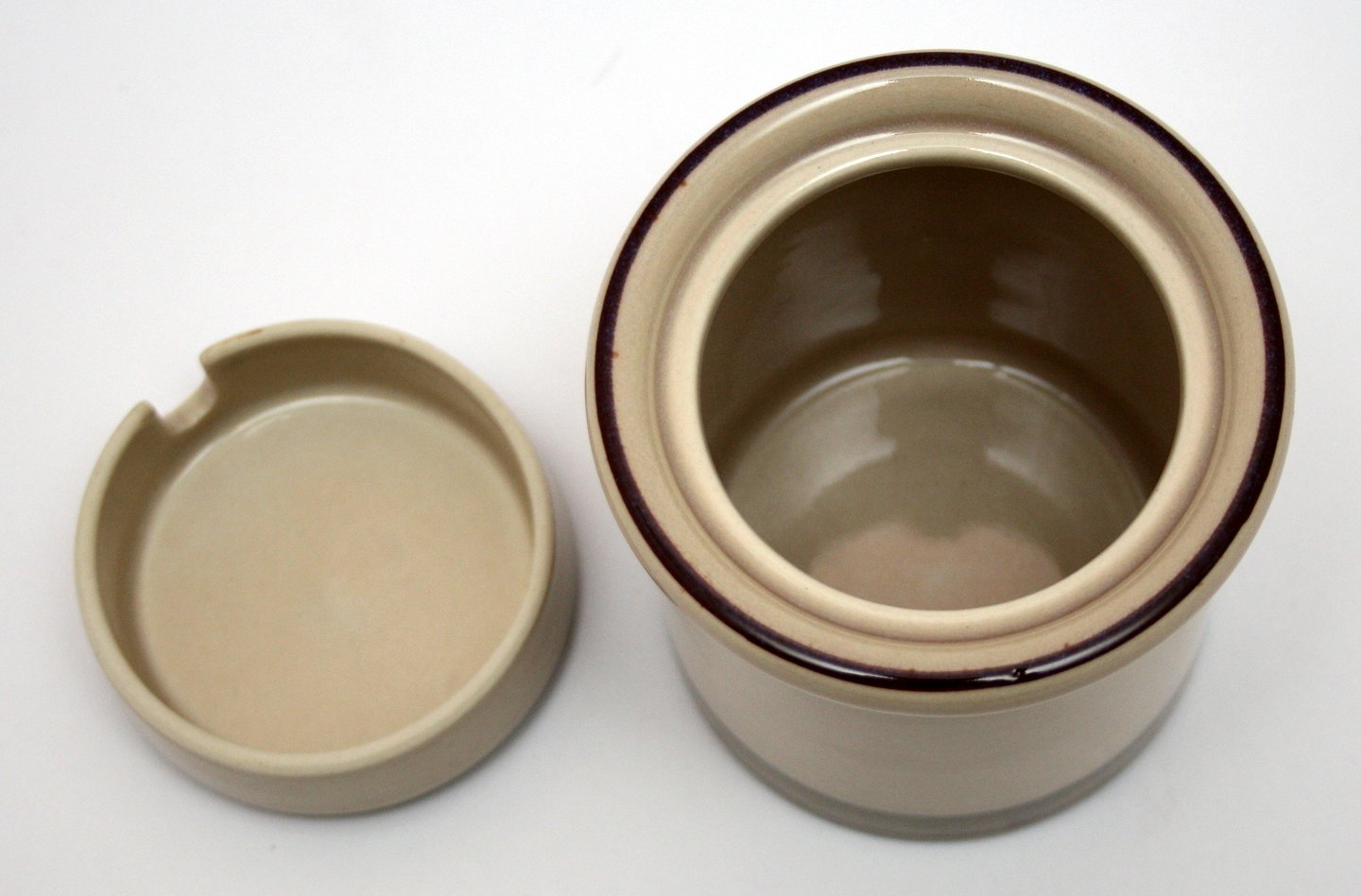 Bing & Grøndahl stoneware, Peru, Marmeladekrukke med låg. Diameter 8 cm. Højde 11 cm. Nr. 523. Pris: SOLGT