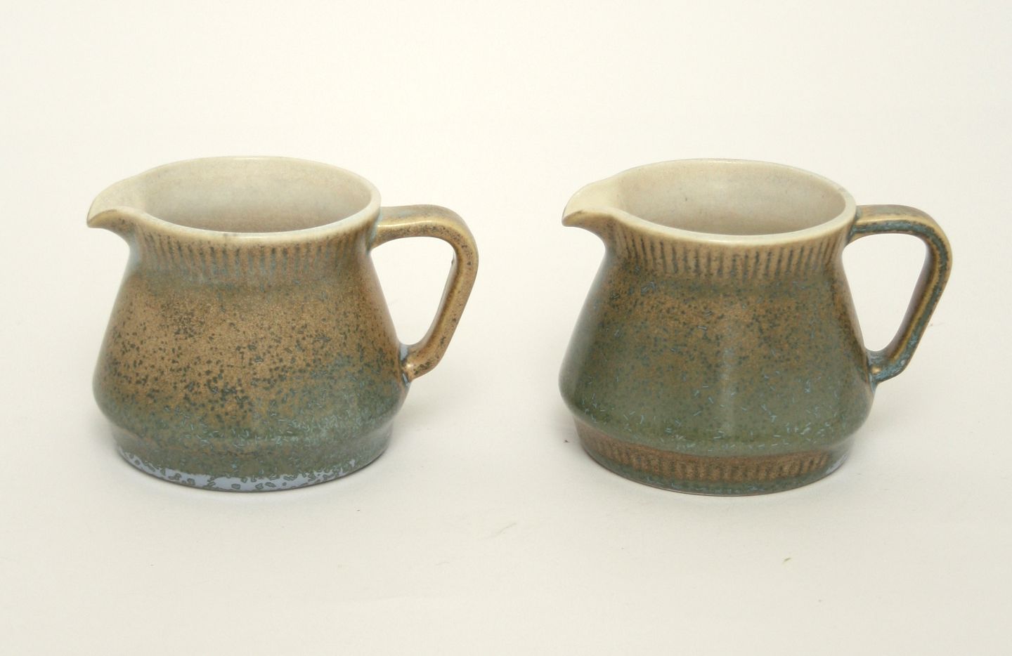 Knabstrup stoneware, Knabstrupstellet i azurfarvet glasur. Flødekande. Højde 6,5 cm. Pris: SOLGT