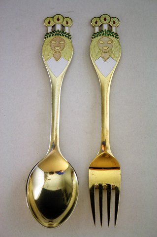 Juleske og -gaffel 1959 Anton Michelsen forgyld