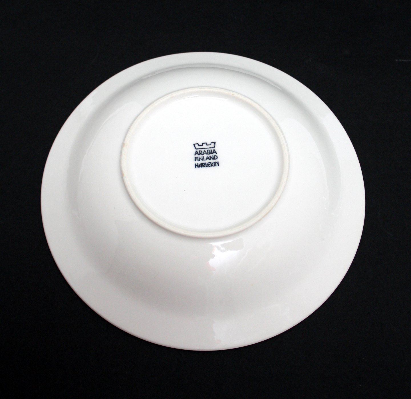 Arabia, Finland, Harlekin, rødhat. Creme tallerken med rød indvendig kantstribe. Designet af Inkeri Leivo i 1988. I produktion til 1993.