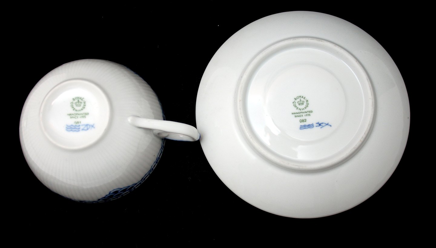 Royal Copenhagen, Prinsesse. Tekop nr. 081. Håndmalet designet i 1978 og fortsat i produktion. Højde 5 cm. Diameter 10 cm. Underkop nr. 082 diameter 14,5 cm. I. sortering. Pris: 300 kr. stk. Lager: 4