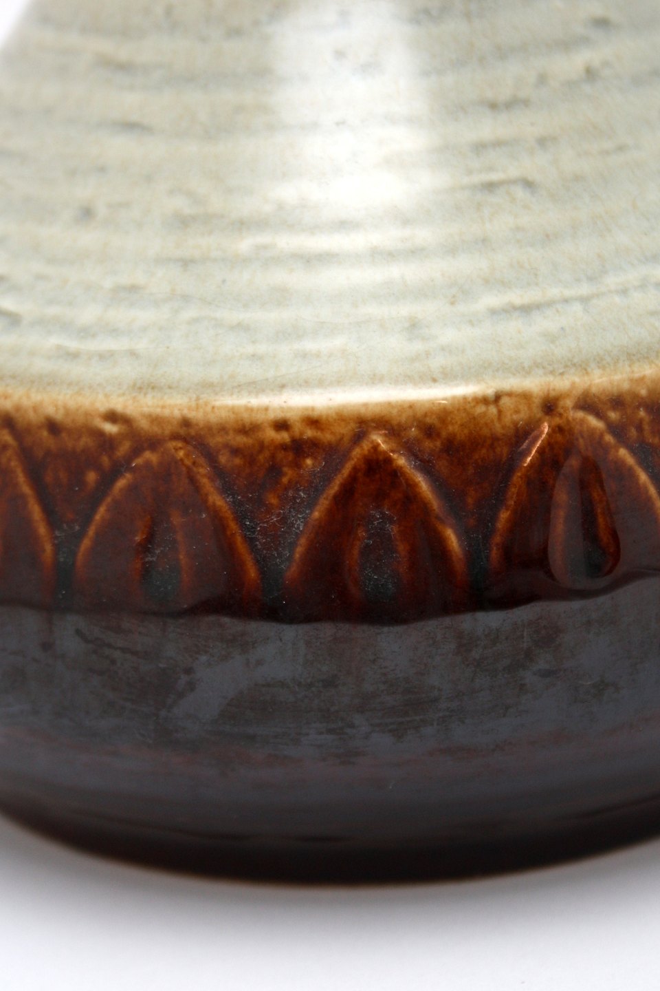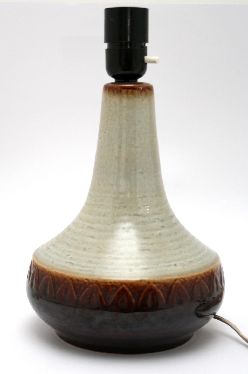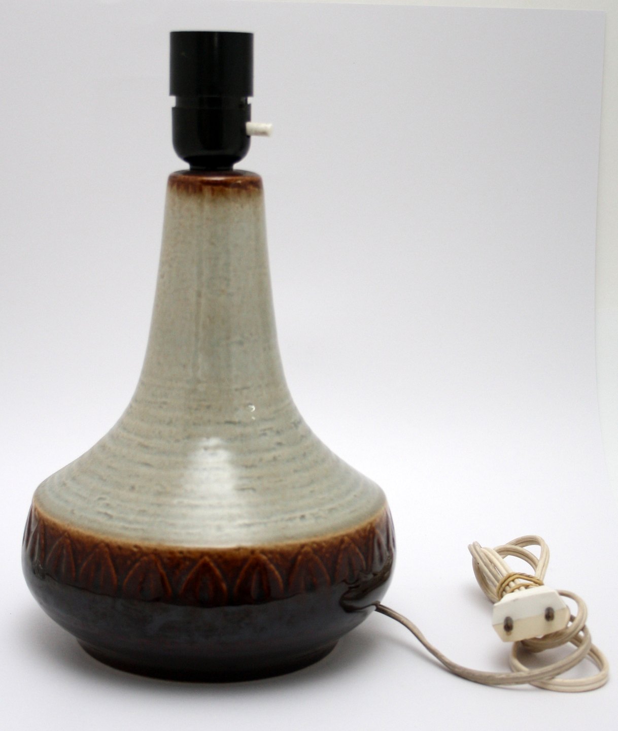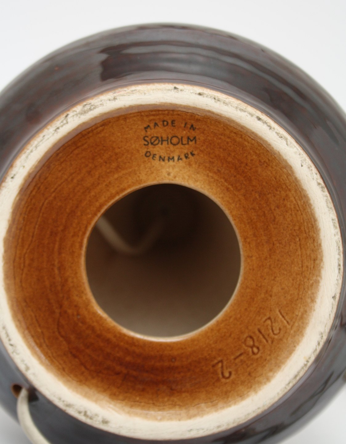 Søholm bordlampe i grå og brun blank glasur. Nr. 1218-2. Højde 28 cm. Bund største diameter 18 cm. Overfladekrakelering i glasuren. Pris: 350 kr. RESERVERET