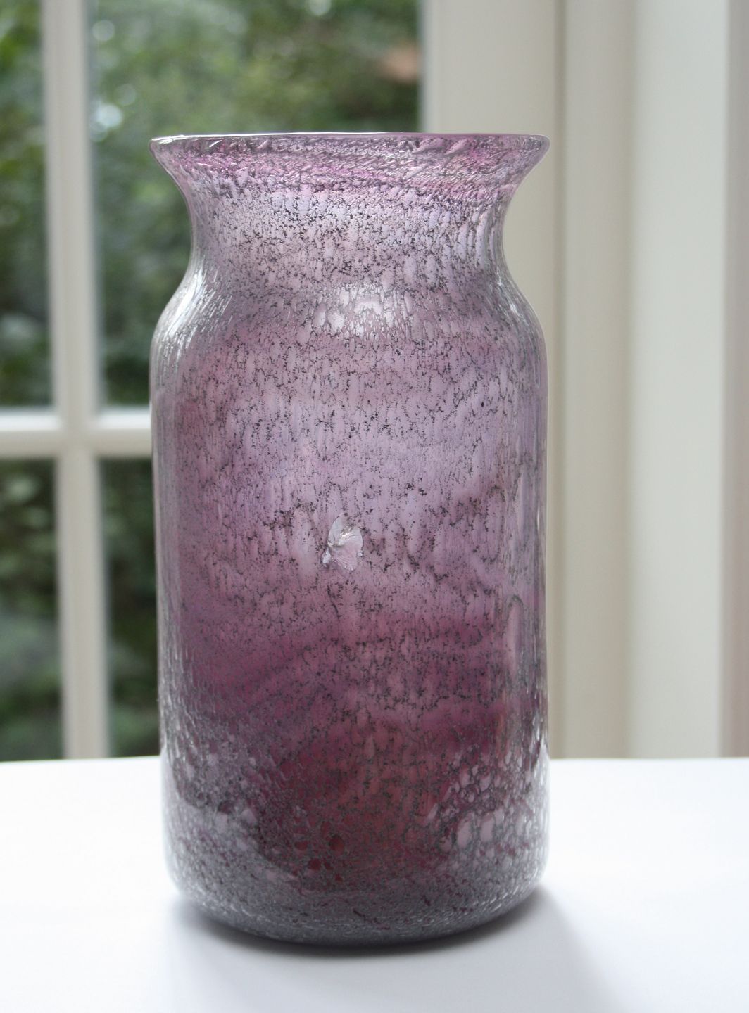 Kastrup-Holmegaard, Troldglasserien, Vase i rosa/lavendel. Designet af Sidse Werner 1975. Højde 21,5 cm. Øverste diameter 11 cm. Usigneret. Produktionsfejl indvendig, som en bristet luftboble. Pris: 350 kr.