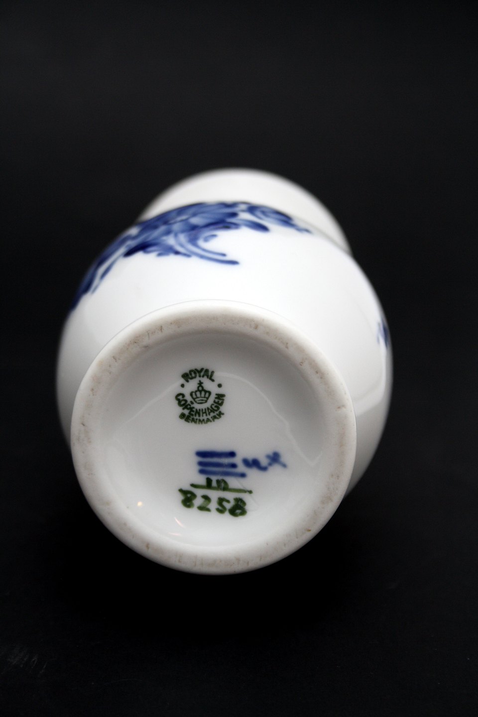 Royal Copenhagen, Blå Blomst flettet, Vase. Nr. 10/8258. Højde 14,5 cm. Øverste diameter 6,5 cm. II sortering brændingsplet. Pris: SOLGT