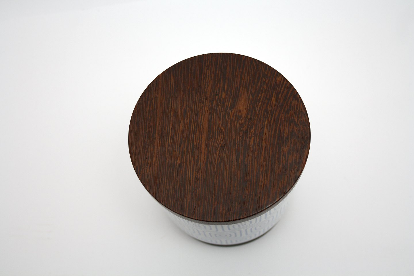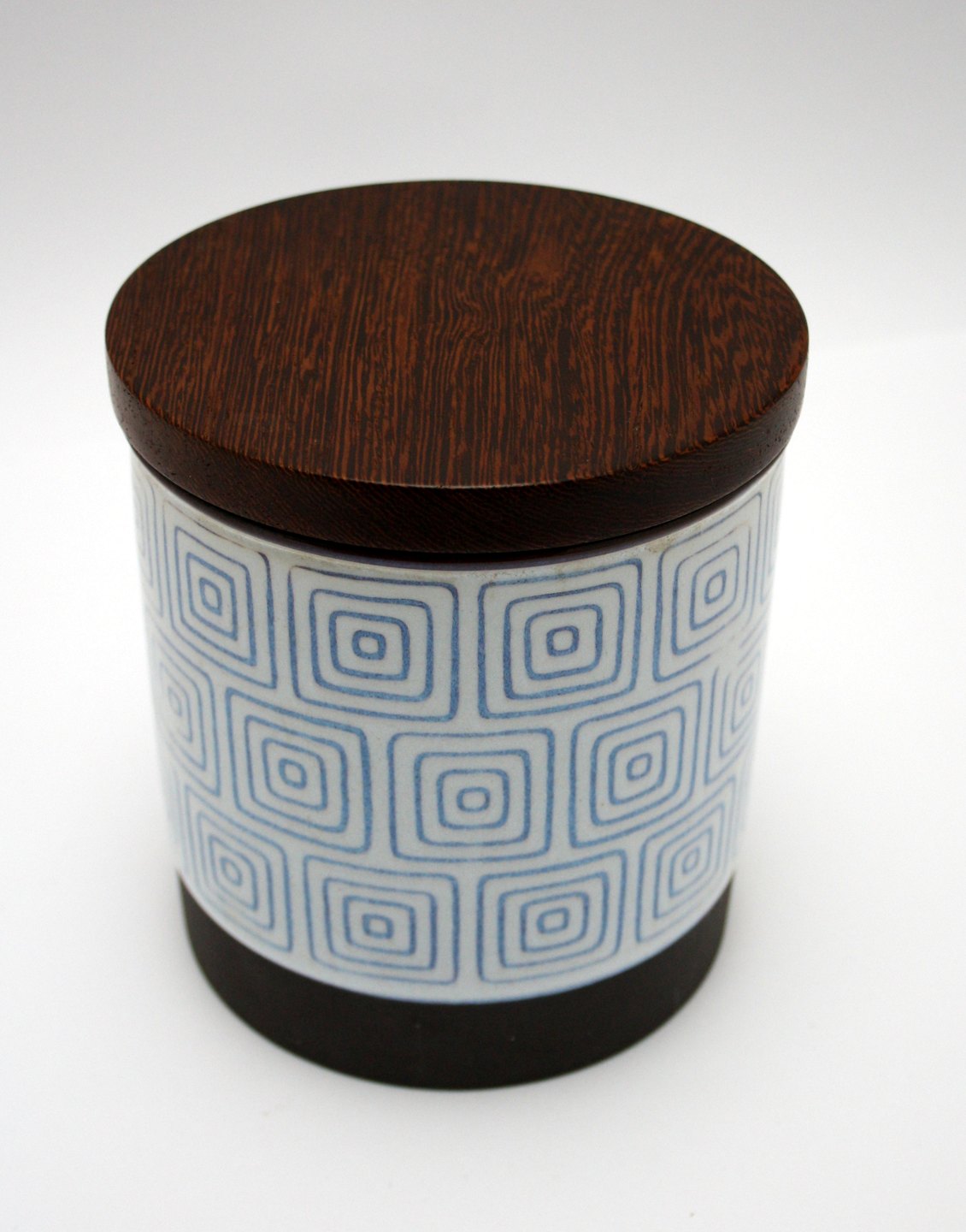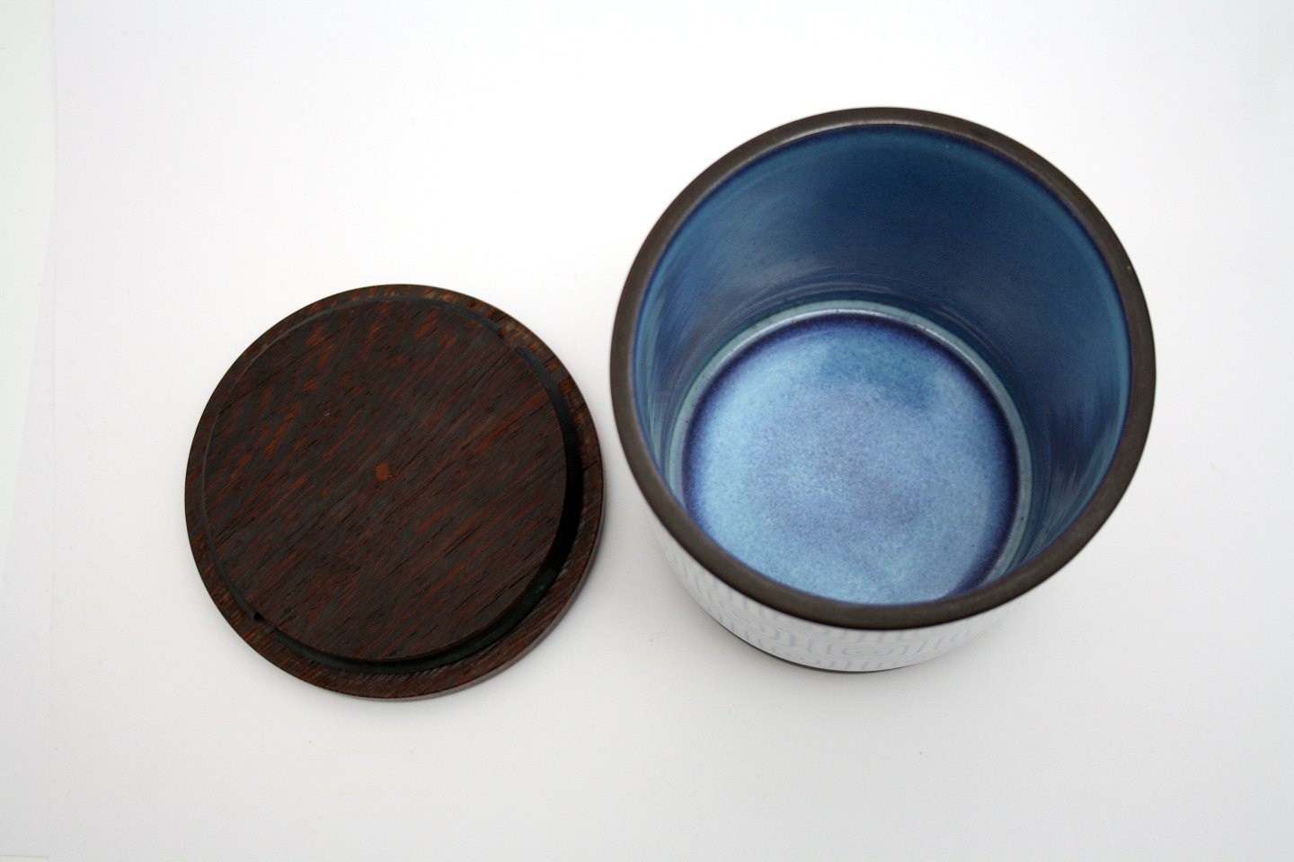 Krukke med palisanderlåg. Nr. 3157. Højde 13,5 cm. Diameter 12 cm. Flot stand. Pris: SOLGT